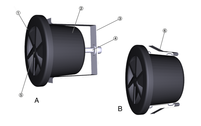 Unidad lista para instalación formada por una placa frontal de difusor con hasta seis salidas. Cada salida dispone de deflectores de aire dispuestos de manera radial con copas con elemento distribuidor.