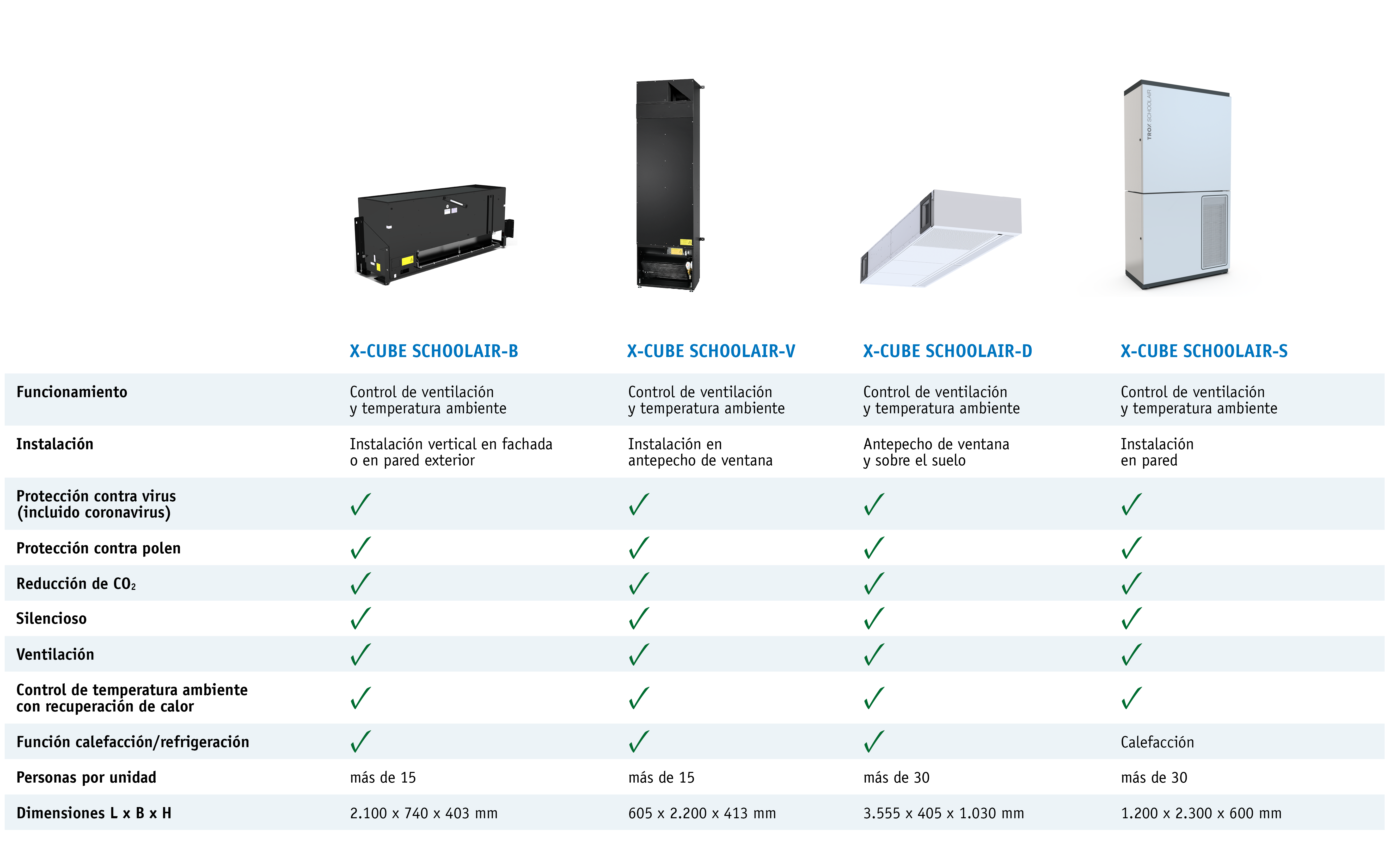 X-CUBE SCHOOLAIR-S-HV está lista para conectar, indicada para edificios en reforma o de nueva construcción.