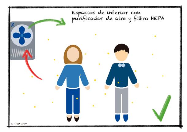 Los purificadores de aire equipados con filtros HEPA, para elevadas tasas de cambio de aire pueden ayudar a reducir la carga viral de manera significativa.