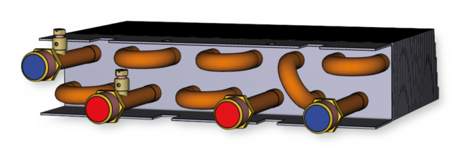 Una vez el aire primario atraviesa el ventilador, el flujo accede a la batería para calentarse y/o enfriarse.