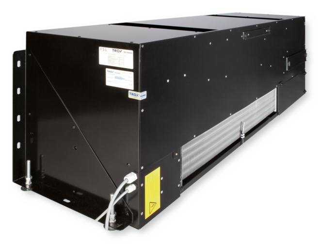Unidad descentralizada para impulsión y retorno de aire Serie FSL-B-ZAB/SEK, incluye batería y recuperador de calor, para instalación en entepecho de fachada o fachada.